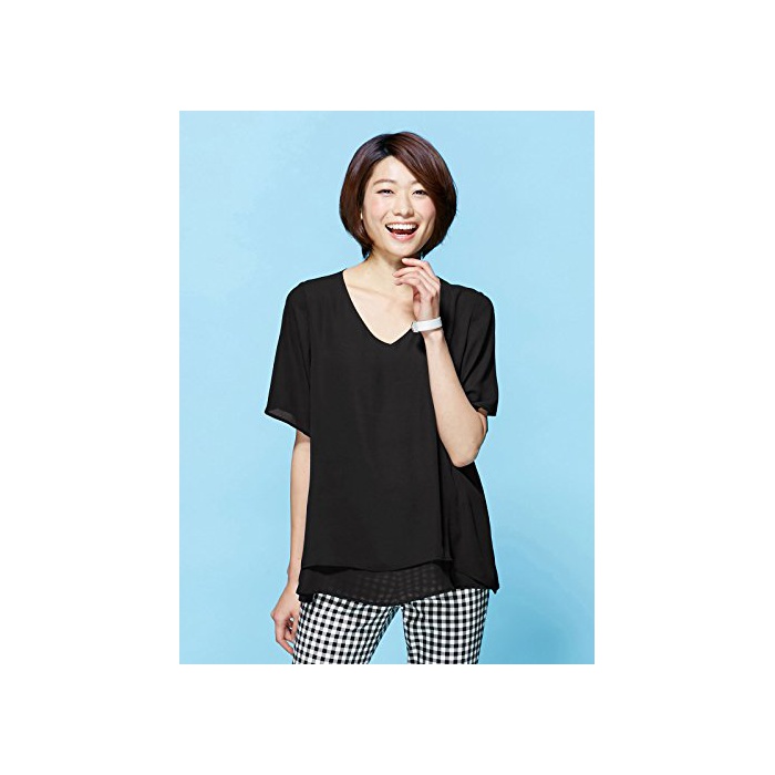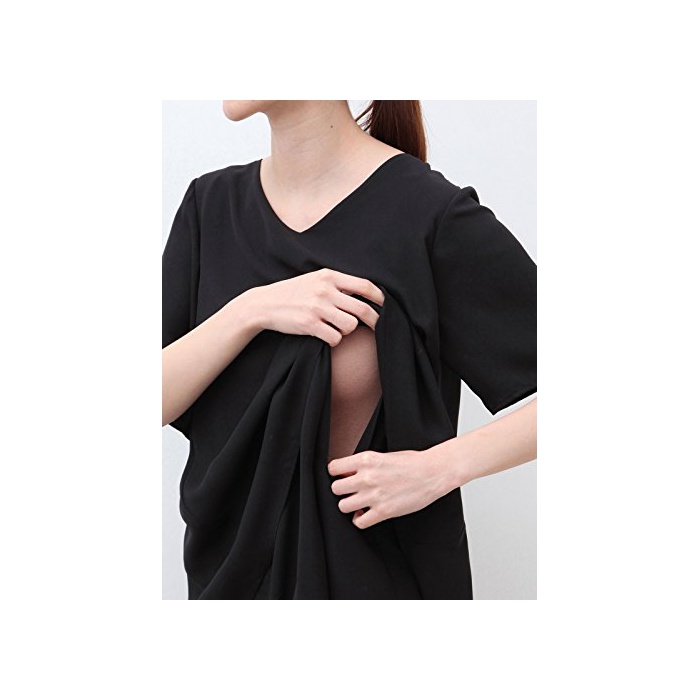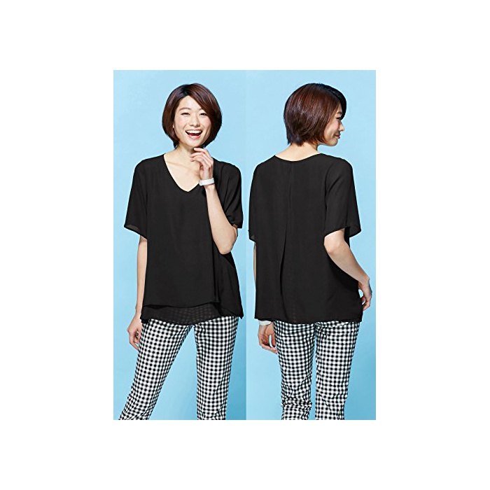 원본상품명: Angeliebe エンジェリ?ベ マタニティ 授乳口付き レイヤ?ド シフォン Vネック トップス 妊婦服 産前 産後 半袖 M ~ L ブラック 21381 21381402