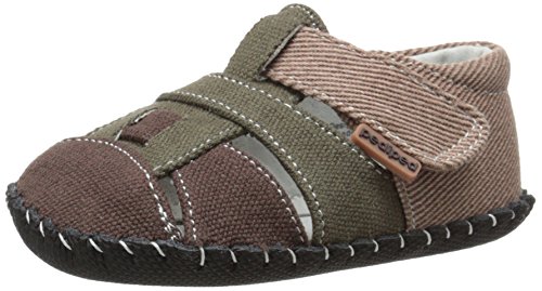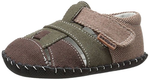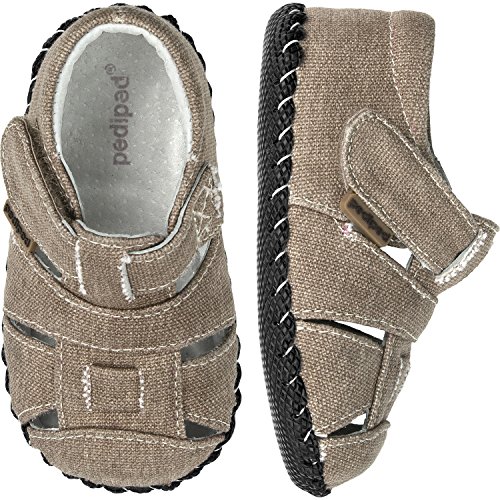 Fisherman sandal featuring upper with wide weaving pieces and hook-and-loop strap closure Padded collar Approved by the American Podiatric Medical Association for promoting healthy foot development Brand : pediped Item model num : Originals Harvey - K MPN(PartNumber) : 160-210 EAN : 0845149079094 Product Dimensions(LxWxH) :
