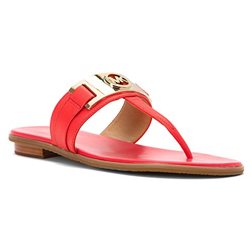 A wide strap across the top of the foot featuring a bold metallic logo embellishment livens up the casual Warren sandals from MICHAEL Michael Kors. Imported. Style 40R6WAFA1L.