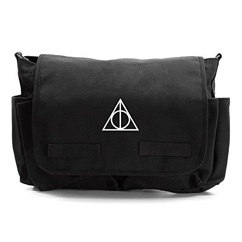 -. Brand : Army Force Gear -. Color : Black & White -. Department : unisex-adult -. EAN : 0014567422533 -. Feature : 2 inch Wide Adjustable Shoulder Strap, Comfortable to Carry, Brass hardware / Four Outside Pockets - Great for water bottles, car keys, and wallets / Inside Zipper Pouch, Stonewashed 100% cotton canvas / Enormous Main Compartment, will hold a 15.6 inch laptop / Bag Dimensions: 15" x 11" x 6" -. Label : Army Force Gear -. Manufacturer : Army Force Gear -. Model : AFMG-BK9118-WH221 -. MPN : AFMG-BK9118-WH221 -. PackageQuantity : 1 -. PartNumber : AFMG-BK9118-WH221 -. ProductGroup : Apparel -. ProductTypeName : LAGE -. Publisher : Army Force Gear -. Size : One Size -. Studio : Army Force Gear -. Title : Deathly Hallows Harry Potter Army Heavyweight Messenger Shoulder Bag, White on Black Canvas -. UPC : 014567422533