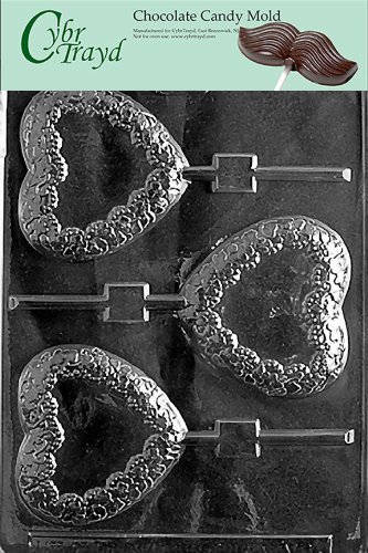 Cybrtrayd V094 Heart with Flowers Lolly Valentine Chocolate Candy Mold