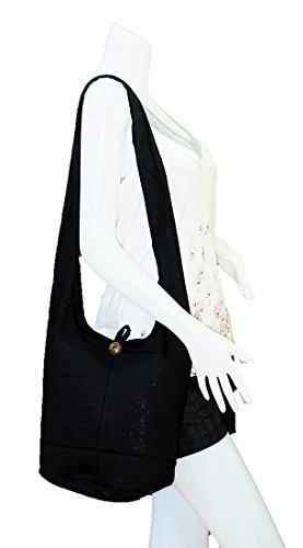 (Pada Craft Shop)/Accessories/Handbags/DIRECT FROM USA/Thai Hippie Hobo Sling Crossbody Shoulder Bag Purse Handmade Zip Plain Black Cotton Gypsy Boho ...