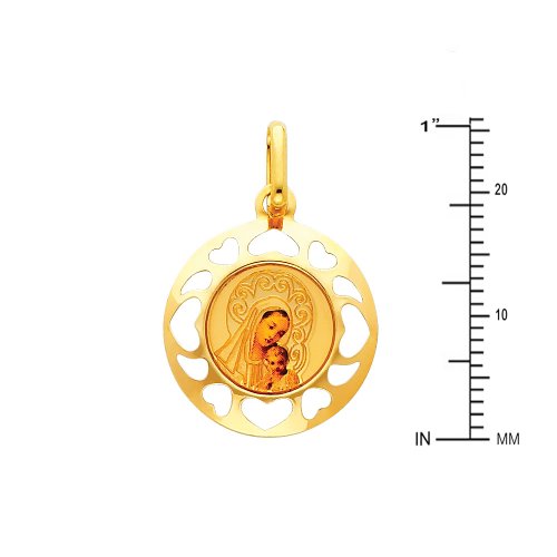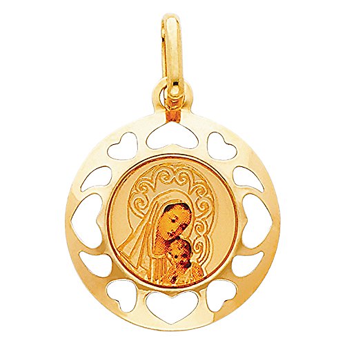 -. Binding : Jewelry -. Brand : The World Jewelry Center -. Department : womens -. Feature : Size : 20.5 mm x 20 mm / Guaranteed 14k Real Gold and "14k" Stamped / NO gold plated or filled / "NO Question Asked" 30-day Return Policy. / Promptly Packaged with Free Gift Box -. ProductGroup : Jewelry -. ProductTypeName : FASHIONNECKLACEBRACELETANKLET -. Title : 14k Yellow Gold Religious Blessed Virgin Mary and Jesus Enamel Picture Charm Pendant