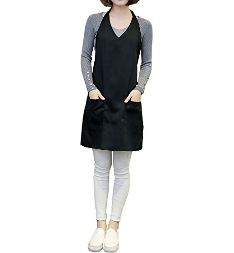 Unique design with V-neck.Comfortable and not tighten.Wear easy and enjoy comfortable apron.Large bib apron can be avoided kitchen grease, spills and food stains for you.