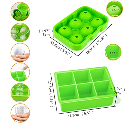 - 【Mutil-Function Uses & Value Set】Our ice trays contains set of 2 different ice mold with removable cover creating a total of 12 large ice cubes, the ice cube size:1.97" x 1.97" x 1.97". Ice cubes will chill your drink much faster than standard size or large cubes so you can enjoy that nice cold first sip much quicker. The Ice Ball keeps your cocktail or beverage chilled longer time. Mini ice cubes trays are also fantastic for making smoothies, ice cubes, spheres or popsicles and so on .