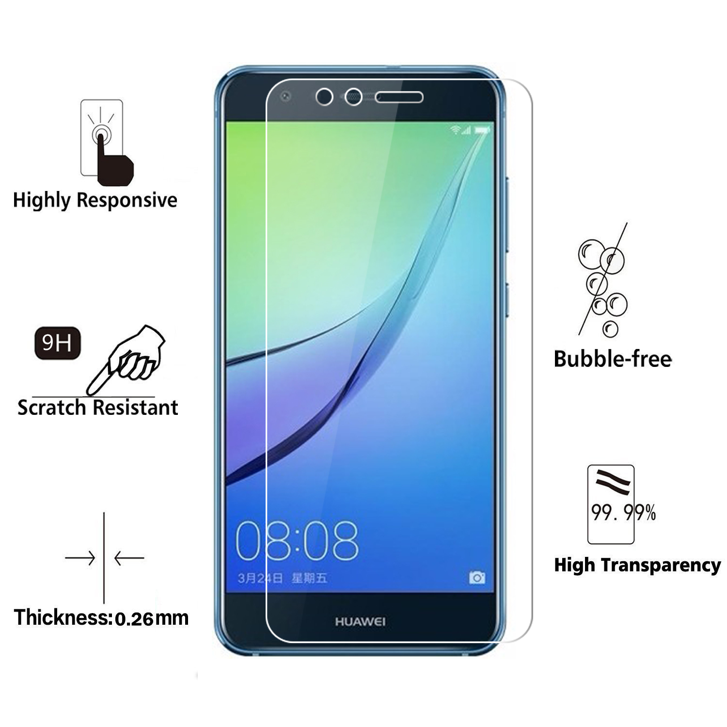 2 Pcs/Lot 2.5D 0.26mm 9H Premium Tempered Glass Foru0026nbsp;Huawei Nova Youth Screen ProtectorToughened protective film