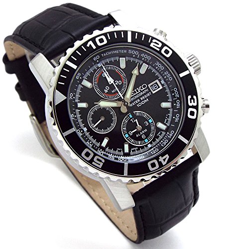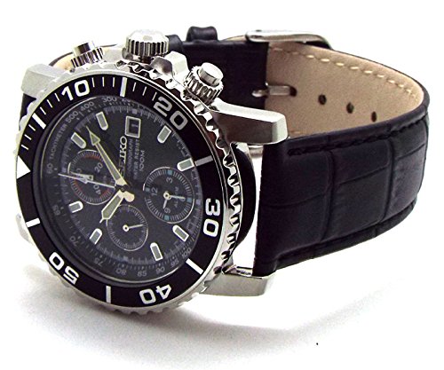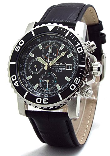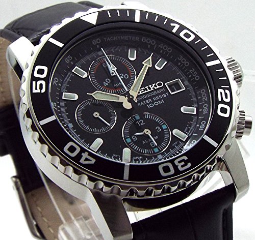 SEIKO 다이버 알람 크로노그래프 100m방수 회전 베젤 손목시계 가죽 벨트세트일본 세이코 정규 유통품 블랙 다이얼 SNA225PC [병행수입품]