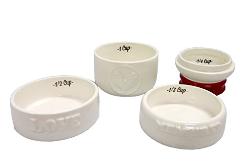 - Set Includes: (4) Ceramic Measuring Cups: 1 Cup, 1/2 Cup, 1/3 Cup, 1/4 Cup
