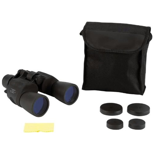Features XLR blue coated lenses for more light and less glare, thumb lever to change from 10 to 30 power, hinged 5-3/4” barrels, center wheel focus, neck strap, lens cloth, nylon carrying case with strap. Limited 50 year warranty. Gift boxed.