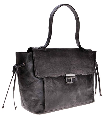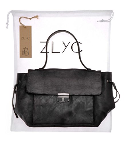 ZLYC Women Handmade Dip Dye Leather Simple Classic Handbag with Flap Push Lock