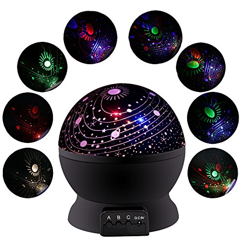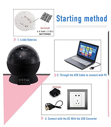 MORE FUNNY WITH: 2 covers of Star Sky Moon Cover & Solar System Cover Projector Light, 1.5 Meter USB Cord, 4 pcs LED Beads of warm light, blue light, green light, red light.They are match with 3 Push-Button (A B C) by MOKOQI.