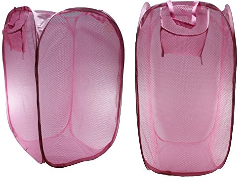 Pop Up Hamper Storage Extra Large for Toys, Laundry Hamper Bag with Carry Handles, Pack of 2 Pink
