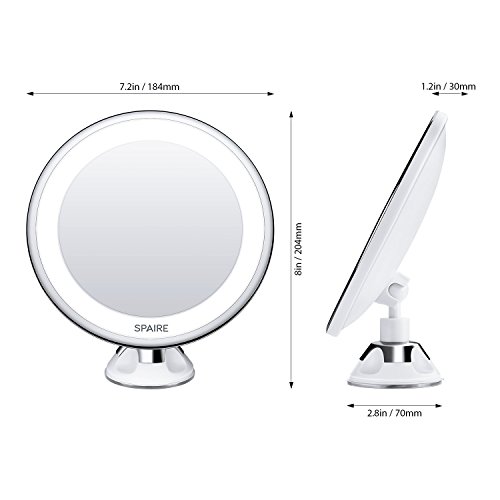 - DIMENSON: The diameter of the mirror is 7.2 inch, LED circular light included. the diameter of the suction cup is 2.8 inch