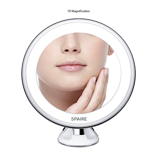 Spaire 7X Magnifying Lighted Vanity Makeup Mirror LED light 360 Degree Swivel Rotation Locking Suction Battery Operated for Skin Care and Shaving