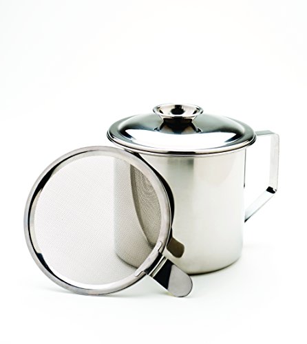 CONVENIENT AND SAFE: Don’t use glass jars, aluminum cans, or plastic containers. Stainless Steel Container and Mesh Strainer Screen won't crack, leach dangerous metals or melt and it is dishwasher safe.