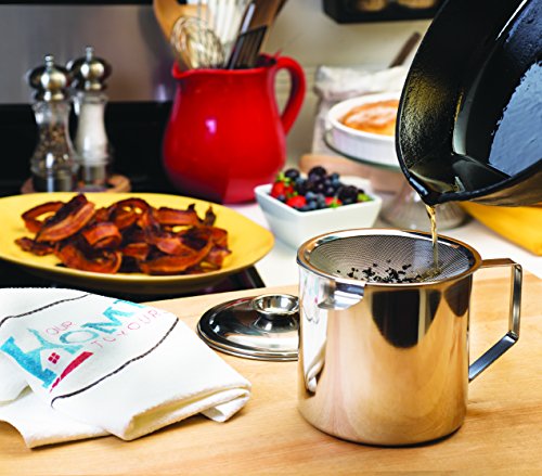 Cooking Oil and Bacon Grease Catcher, Container, and Keeper. Perfect As A Pan Grease Holder, 1.25 (5 Cups) Qt Stainless Steel Mesh Strainer Screen - Capture the Magic of Traditional Down Home Cooking
