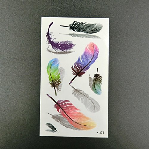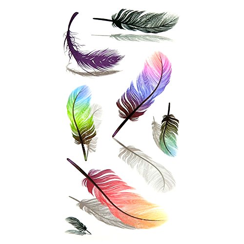 Oottati Small Cute Temporary Tattoo 3D Feather (2 Sheets)
