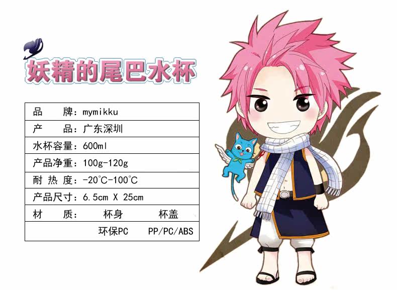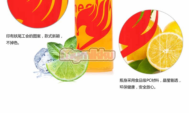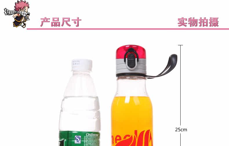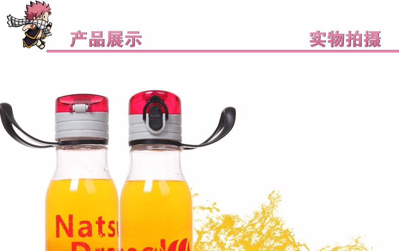 妖精的尾巴透明杯子 动漫水壶 便携式运动环保塑料水杯