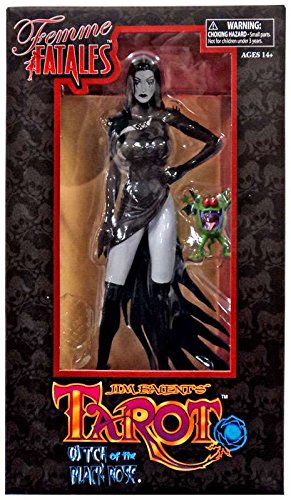 A Diamond Select Toys release! It's been 15 years since the debut of the comic book Tarot: Witch of the Black Rose, so DST is reteaming with Broadsword Comics for a new statue of Tarot's sister, Raven Hex! Featuring an entirely new sculpt, this PVC statue of Raven Hex, sister of Tarot, measures approximately 9 Inch in a sultry black dress. With the goblin Mudwart by her side, she stands atop an open-book display base, which combines with her sister Tarot's base to form the complete tome. Packaged in a full-color window box. Sculpted by Sam Greenwell!Feature