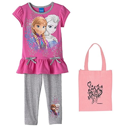 Disney Frozen Little Girls' Bow Top & Leggings Set & Tote - 3 Piece Gift Set