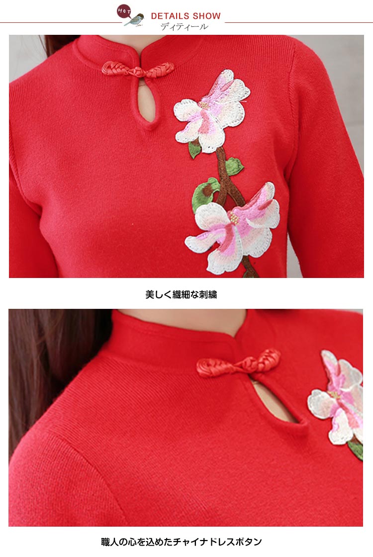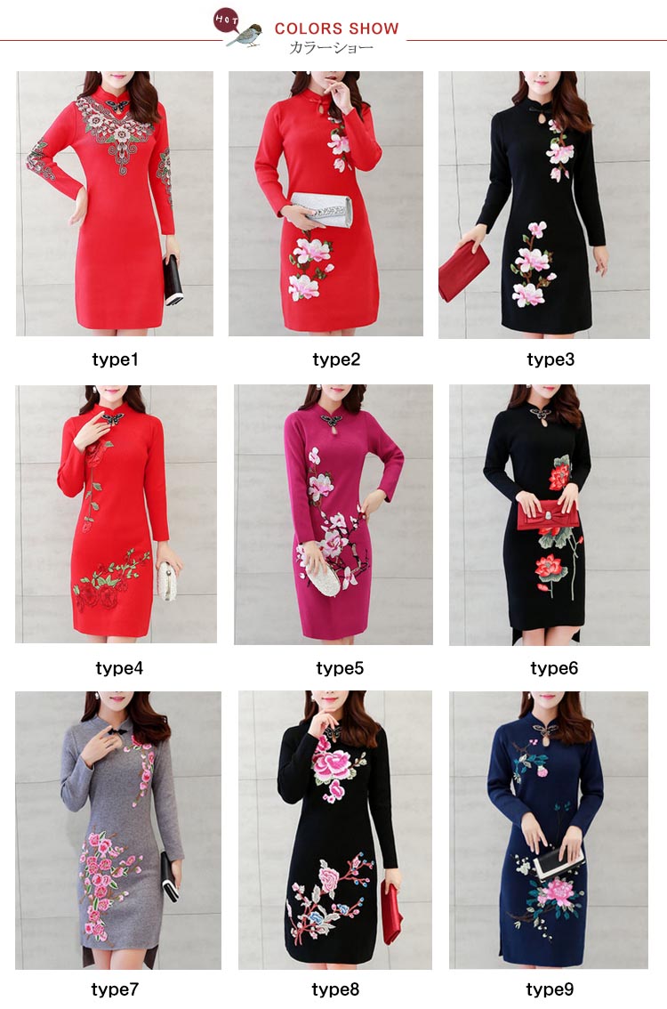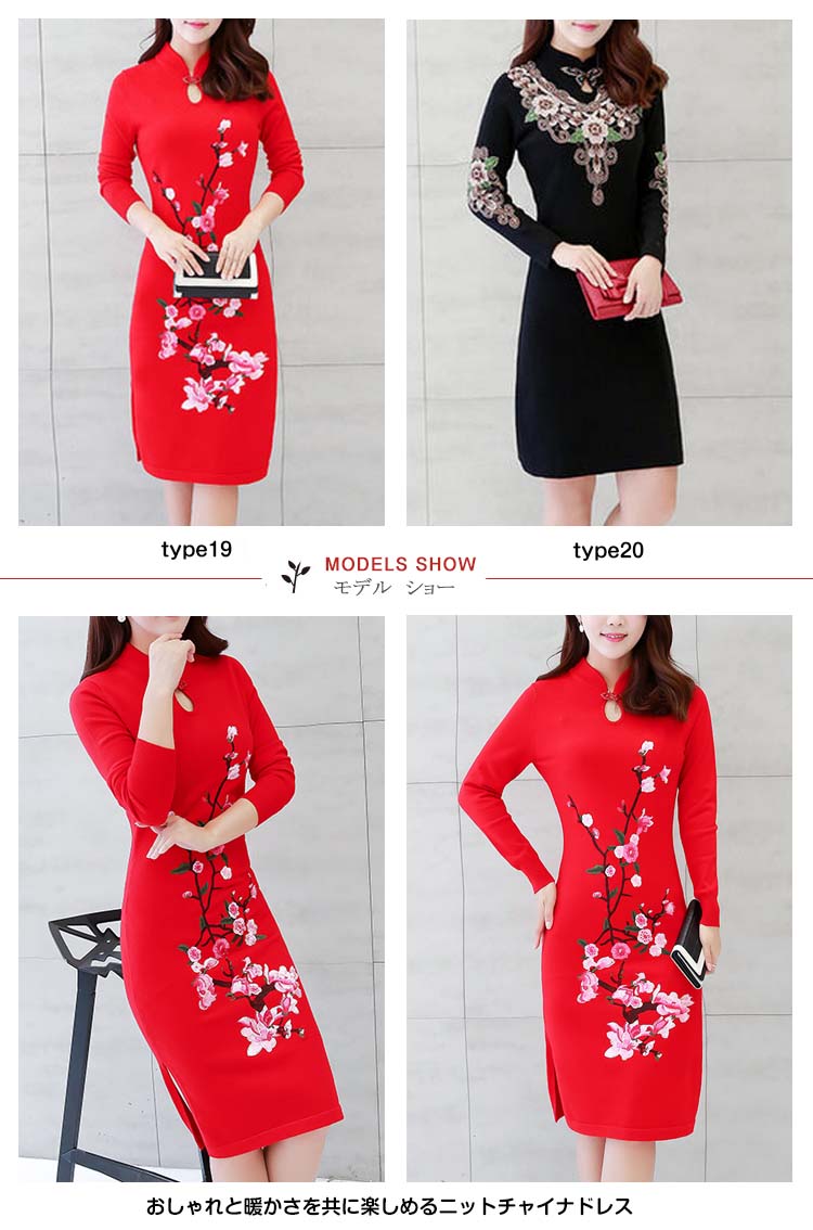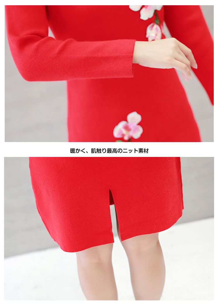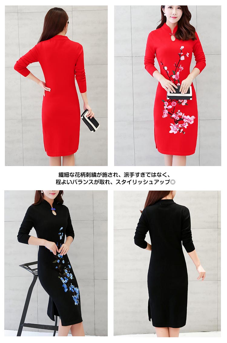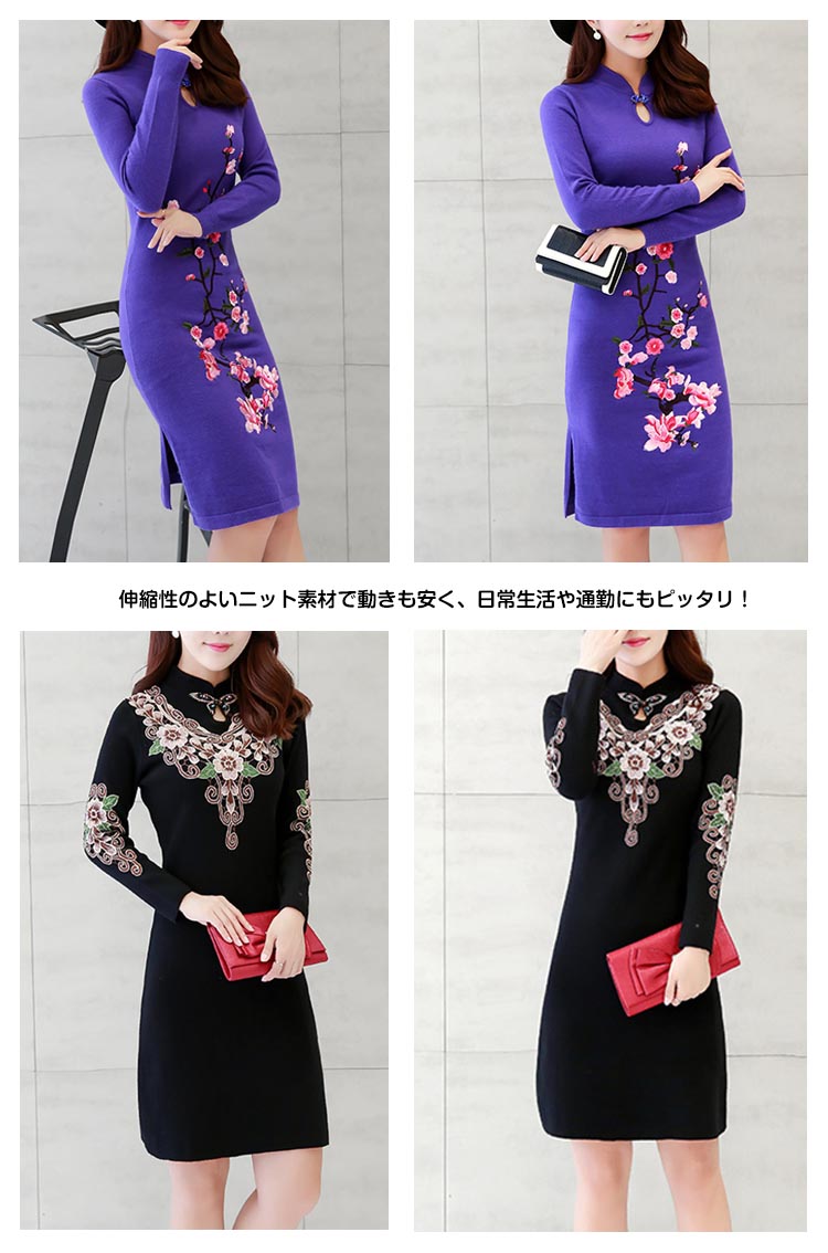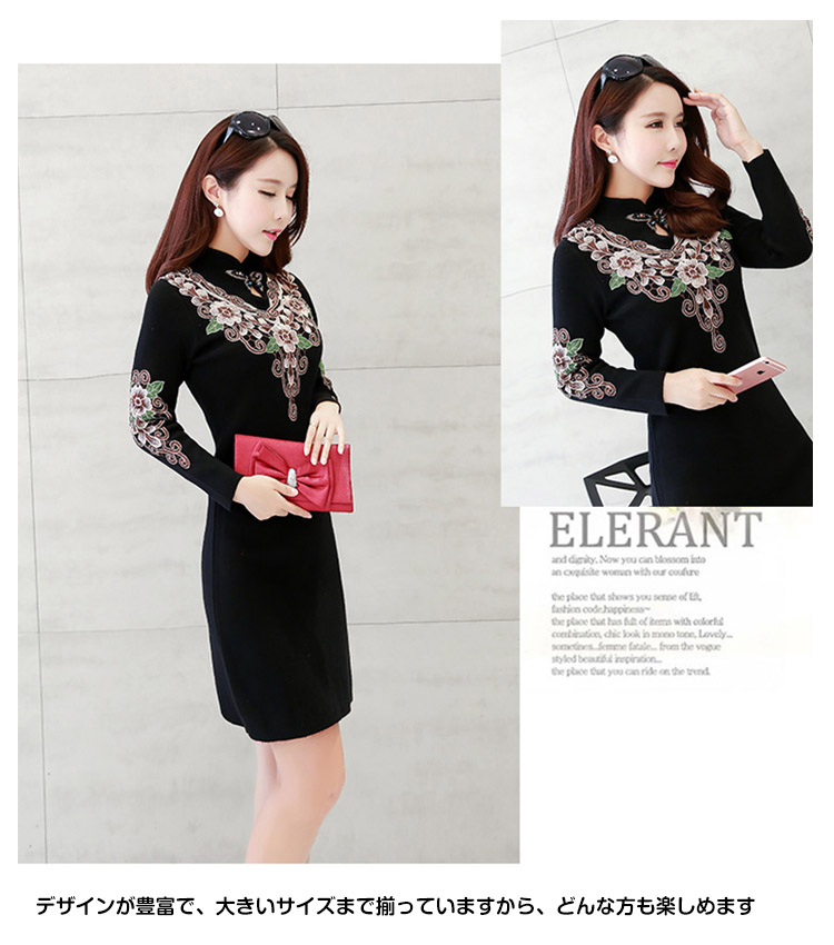 | おしゃれと暖かさを共に楽しめるニットチャイナドレス繊細な花柄刺繍が施され、派手すぎではなく、程よいバランスが取れ、スタイリッシュアップ◎伸縮性のよいニット素材で動きも安く、日常生活や通勤にもピッタリ!デザインが豊富で、大きいサイズまで揃っていますから、どんな方も楽しめます | |