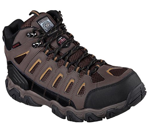 -. Binding : Apparel -. Brand : Skechers -. Color : Dark Gray Action Nubuck/ Mesh W/ Gold Trim -. Department : mens -. Feature : Leather and synthetic upper / Mesh fabric insert / Fabric lining / Cushioned footbed / Lace entry with metal eyelets -. Label : Skechers for Work -. Manufacturer : Skechers for Work -. Model : 77054 -. MPN : Blais-Bixford-M -. NumberOfItems : 1 -. PackageQuantity : 1 -. PartNumber : Blais-Bixford-M -. ProductGroup : Shoes -. ProductTypeName : SHOES -. Publisher : Skechers for Work -. Size : 7 M US Men -. Studio : Skechers for Work -. Title : Skechers for Work Men's 77054 Blais-Bixford Steel Toe Hiking Shoe
