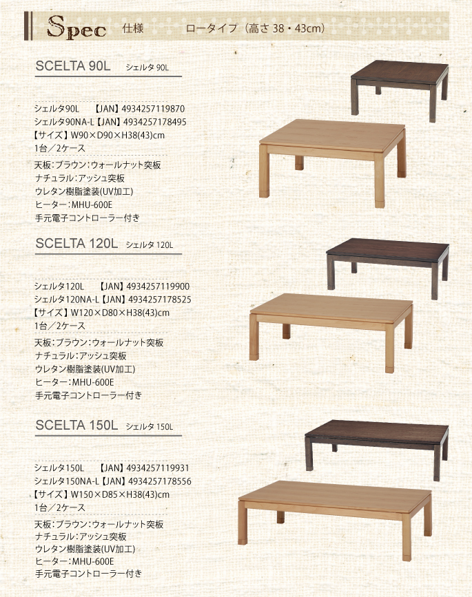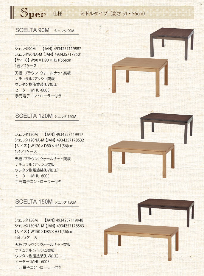 天板:ウォールナット突板 塗装:ウレタン樹脂塗装(UV加工) ヒーター:MHU-600E ハロゲンヒーター(手元電子コントローラー)