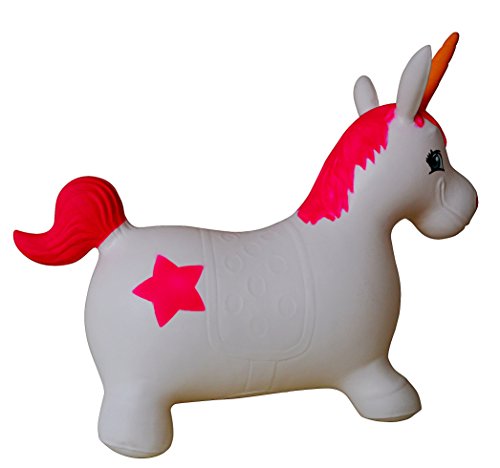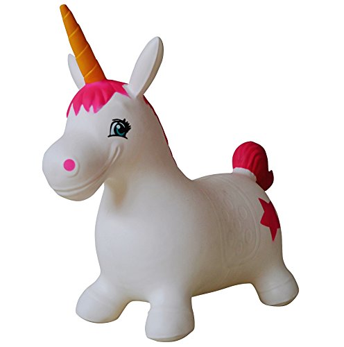 Studio : Apple Round Global Trading LLC Publisher : Apple Round Global Trading LLC Binding : Toy Product Description This jumping Unicorn (bouncy hopper) is children's favorite playmate! Your little ones will learn balance and coordination while riding on the Unicorn and having fun! The product fully complies with EU US Toy Safety Standards. It contains no US banned phthalates and heavy metal elements. Safe to play! The Jumping Unicorn can be inflated to a saddle height of 26 cm/ 10 inches with a regular hand pump. A 9-inch two-way action pump is included for FREE! Recommended Ages: 2 Years . Children under 3 years old should be under direct supervision of an adult. Easy inflation: Take out the inserted white plug (air stopper) from the hole on the Unicorn belly; insert the tip of the pump and inflate the hopper to good size, and then replace the white plug back into the hole quickly. Bounce! FAQs in using this item. Q1: The nozzle doesn't fit, I can't use the pump. A: The inserted white plug (air stopper) on the hopper must be removed first! Inflation Instruction: Step 1: Take out the inserted white plug (air stopper) from the hopper belly Step 2: Insert the tip of the pump into the mouth (built-in variable aperture) Step 3: Pumping the hopper to proper size Step 4: Quickly replace the white plug back into the hole to stop air leak. Done! Q2: The pump doesn't pump out air, How to get a replacement for a faulty pump, or a hopper? A: Should Pump or Hopper be defective, please 'Contact Seller' directly (other than Amazon Customer Service) from Amazon Buyer Central against this order for a replacement or refund. Seller aims to provide hassle-free after-sales service and usually replies most emails in 12 hours. 0