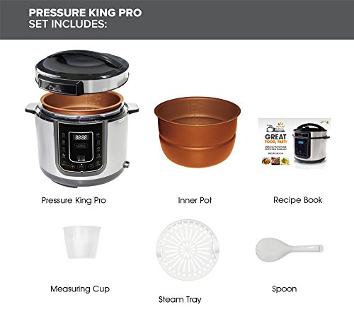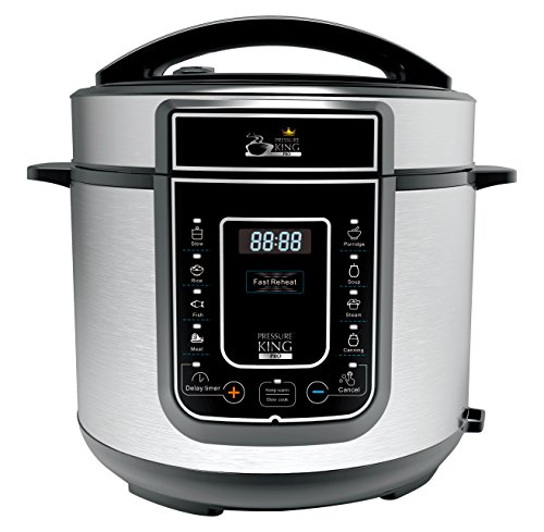 Pressure King PKP-5LCH PRO 5 Liter Chrome Color Pressure Cooker Capacity: 5 litre Colour: Chrome 12 pre-set functions 24 hour delay timer Keeps food hot until ready to eat Locks in vitamins and nutrients Can cook from frozen 220 - 240 Volt 50 Hz