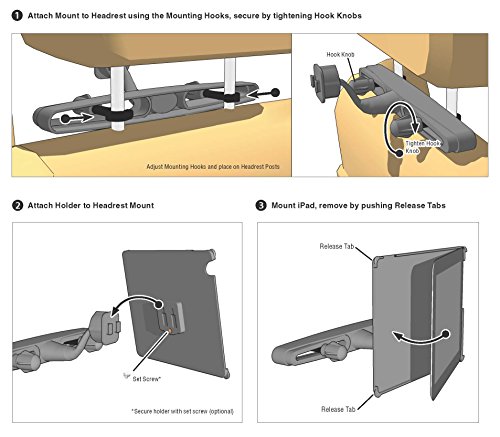Arkon Custom Fit Apple iPad 4 3 2 Single Seat Car Headrest Mount Holder