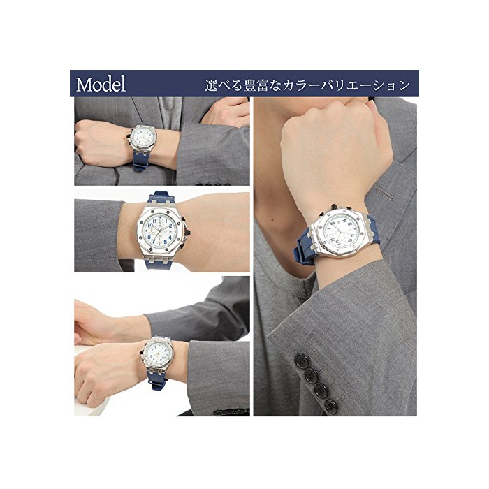 사이즈 문자판:약41mmx 약41mm 두께:15mm 무게:106g 벨트폭:20~25mm 팔 주위:165mm~210mm