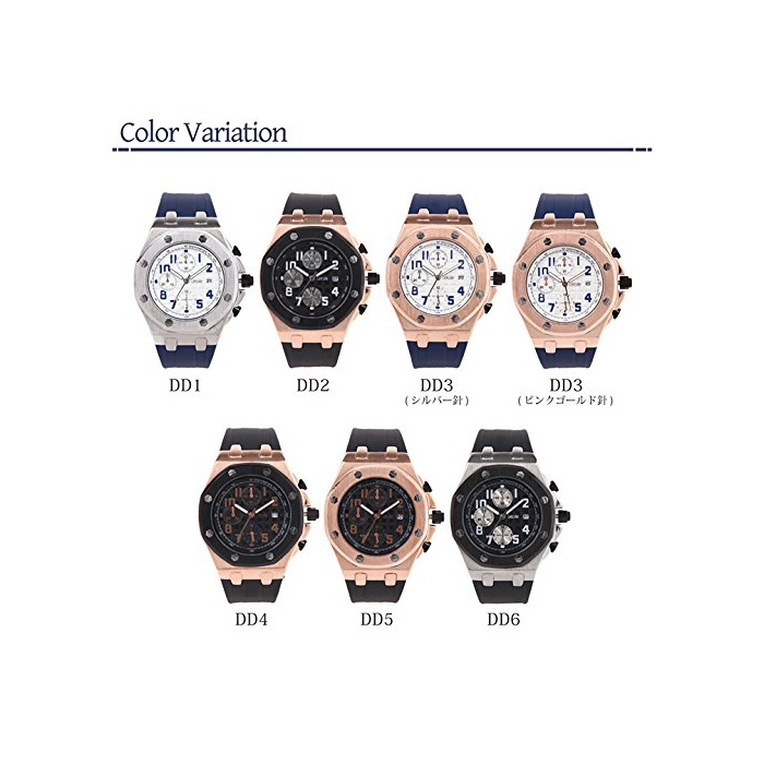 【《레토와루》】Letoile 맨즈 손목시계 러버 벨트 아날로그 표시 쿼츠 팔각형 캐주얼 워치 남성용 DD시리즈 (DD2)