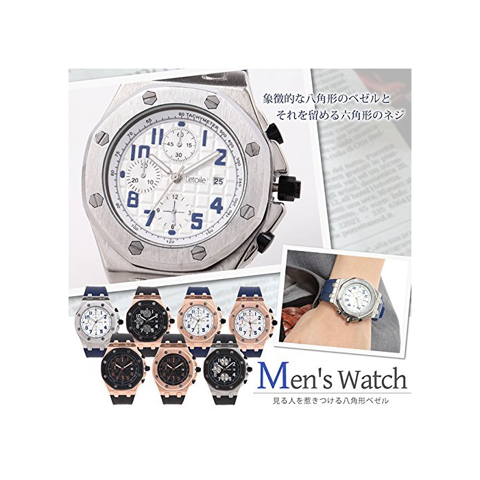원본상품명: 【レトワル】Letoile メンズ 腕時計 ラバベルト アナログ表示 クォツ 八角形 カジュアルウォッチ 男性用 DDシリズ
