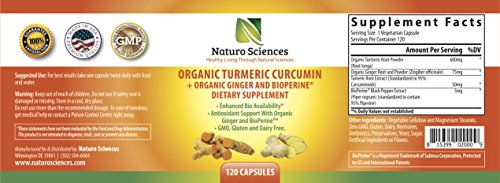 -. Title : Organic Turmeric Extract Curcumin with BioPerine and Ginger Powder By Naturo Sciences (120 Capsules) - Natural, Dietary Supplement with Enhanced Bioavailability & Antioxidant and Joint Support