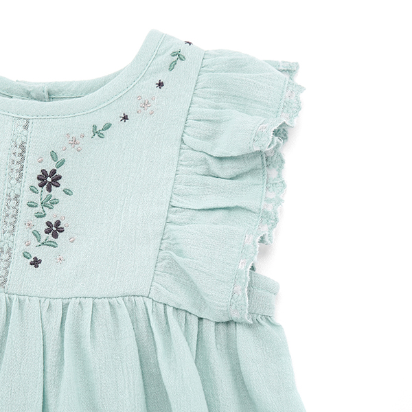 러블리한 자수와 고급스러운 레이스 소재의 활용이 돋보이는 원피스입니다.