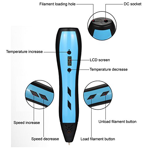 NexGadget Intelligent 3D Printing Pen with LED Screen Compatible with 1.75mm PLA / ABS Filament + 3 Free Filament Refills