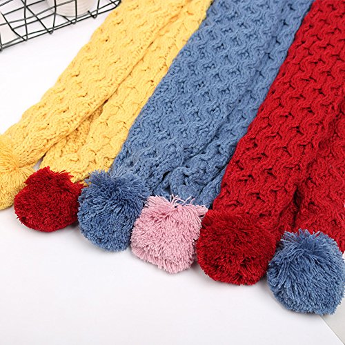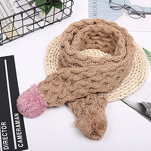 | (PenGreat)/Accessories/Cold Weather Accessories/DIRECT FROM USA/Kids Winter Warm Knit Scarves Fashion Solid Color Cable Scarf Girls with Poms |