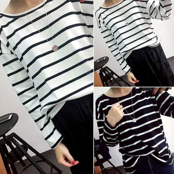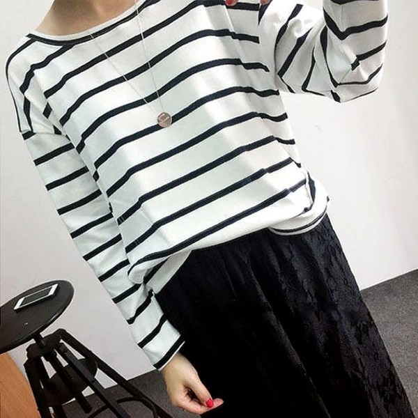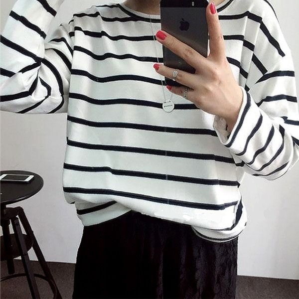 | 商品名 | 長袖 ラウンドネック カジュアル ボーダー Tシャツ カットソー |