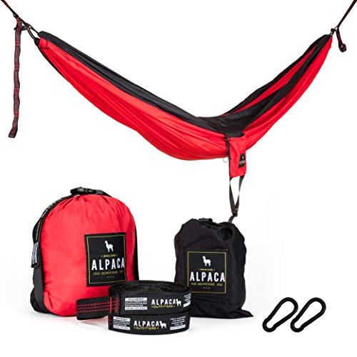 FLASH SALE: Alpaca Outfitters | Double Parachute Camping Hammock - Comes with Adjustable Tree Straps and Heavy Duty Carabiners!