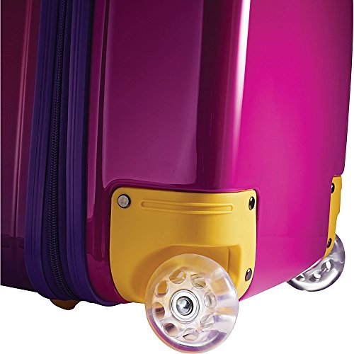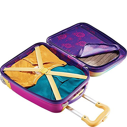 Show your love for your favorite Disney character with this hardside upright travel case from American Tourister. The American Tourister Disney 18" Upright Hardside is made from lightweight and durable ABS material and features a sleek hardside design with side-mounted skate wheels, a mono tube pull handle, and a top grab handle for easy lifting. The interior is fully lined and detailed with crisscross tie-down straps to hold clothing in place and a zip around divider that creates two separate packing compartments. Detailed with colorful graphics of your favorite Star Wars characters, Disney princesses, and other Disney stars, this case is perfect for boys and girls on the go.Feature