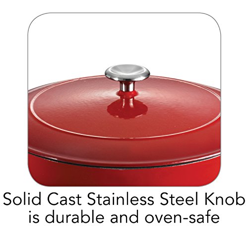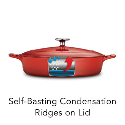 The enameled cast-iron 4 Qt covered braiser is part of Tramontina's Gourmet collection of premium products engineered and manufactured with the finest design, materials and workmanship, outperforming similar products within the market and delivering the best quality and value to the cooking professional and enthusiast alike. Prized by cooks for heat retention and even cooking, this enameled cast-iron 4-qt covered braiser comes in a vibrant, gradated porcelain enamel exterior finish offering an elegant kitchen to table serving option. The self-basting condensation ridges on lid uniformly collect and direct vapors onto food, producing moist and savory dishes making the braiser a perfect vessel for those slow cooking recipes, braised meats, baking dishes and even for frying. For added versatility the lid from the Tramontina Gourmet enameled cast iron 4 Qt covered braiser fits the 12-inch skillet from the same family perfectly! The heavy-gauge cast-iron covered braiser cooking surface is coated with off-white, smooth and easy-to-clean PFOA- and PTFE-free porcelain enamel and the sturdy side handles make handling a filled pan more manageable. Hand-wash only, compatible with all cooktops and oven-safe to 450 F. This product is assembled and packaged in USA and offered under a lifetime warranty.Feature