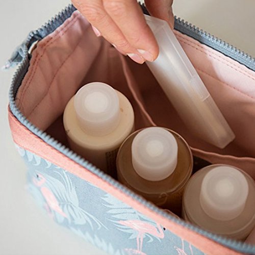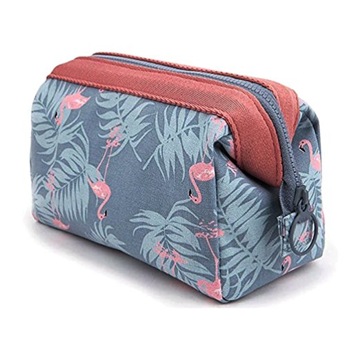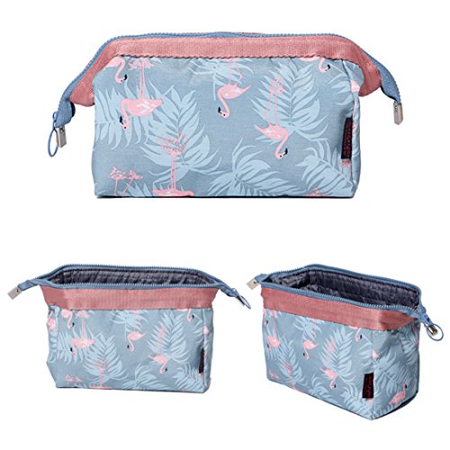 TKSTAR Portable Cosmetic Bag Travel Mini Make up Bag with Pockets for Women Girls Flamingo Design