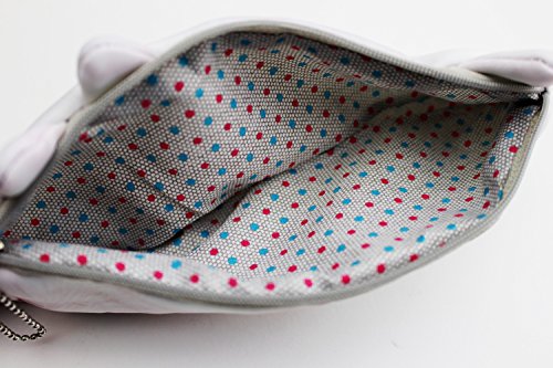 - High quality, interior is patterned with polkadots and lined with soft fabric. zipper