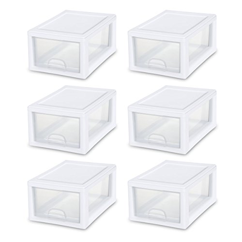 Sterilite 20518006 6 Quart/5.7 Liter Stacking Drawer, White Frame with Clear Drawer, 6-Pack