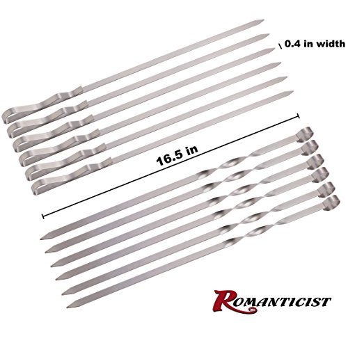 (ROMANTICIST)/Patio, Lawn Garden/Outdoor Cooking/DIRECT FROM USA/ROMANTICIST 2/5 Inch Flat Metal Barbecue Skewers - 16.5 Inch Stainless Steel Grilling BBQ Stick...