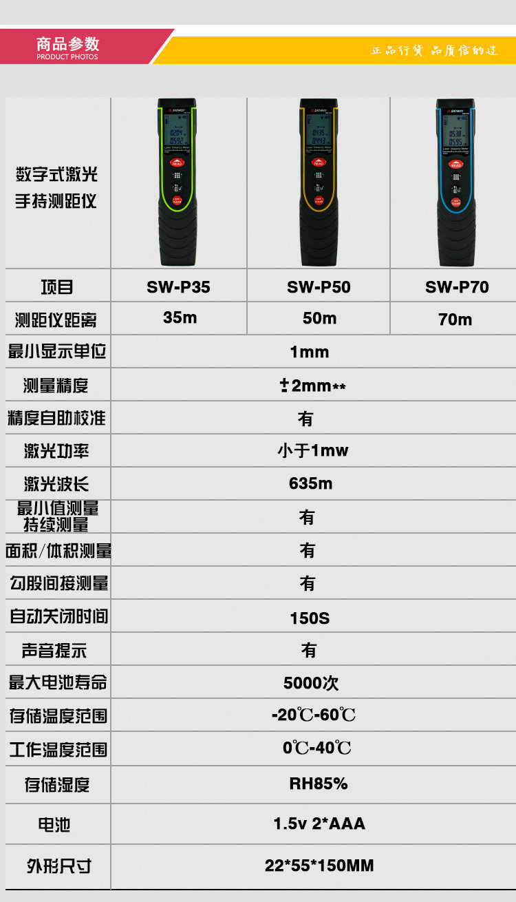 style1:35 m SW-P35 green [standard] style2:50 m SW-P50 yellow [standard] style3: 70 m SW-P70 Blue [Standard]