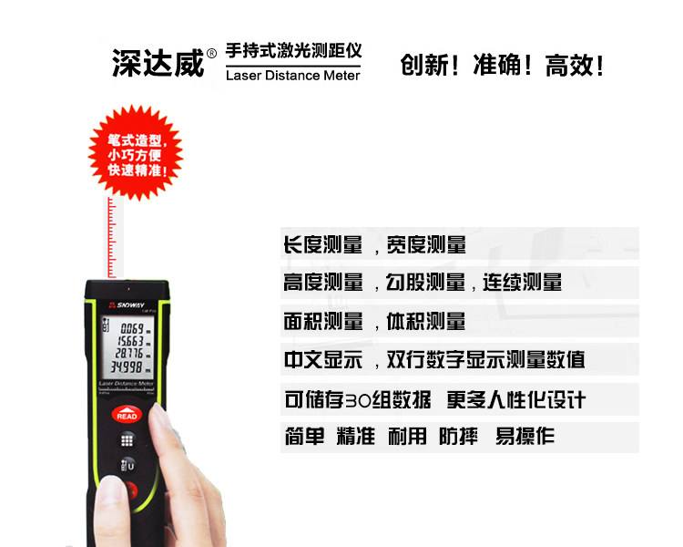 Pen rangefinder, Popular brands Dust-raindrops, Self-calibration - small adjustment to facilitate customers with area, volume, Pythagorean and other measurements, Product dimensions: 22 * 35 * 150mm, Outdoor can be measured oh!