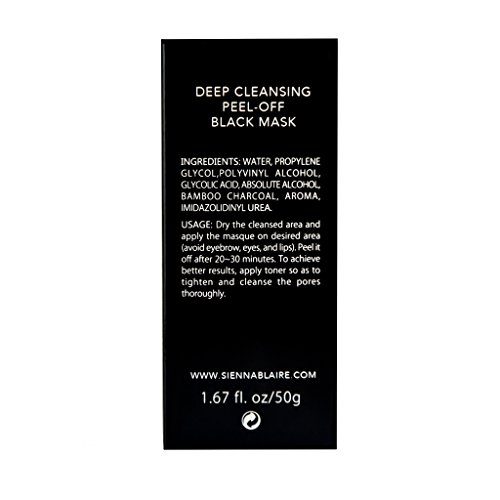 -. Feature : Activated Black Charcoal Face Mask / Hottest new trend in skincare. Our signature Sienna Blaire peel-off mask loved by beauty bloggers and as seen on YouTube. / Penetrates deeply into pores to remove acne-causing oil. / Activated charcoal removes blackheads, acne and oil quickly and efficiently while deep cleaning pores. / Natural peel-off mask. Gelling agents dry tightly to your skin to help remove and suction blackheads.