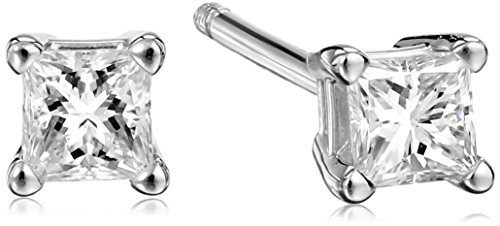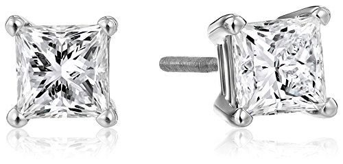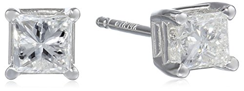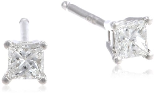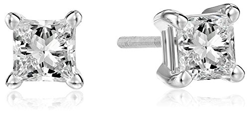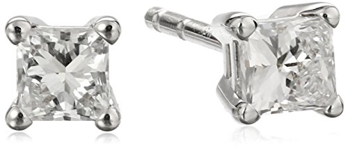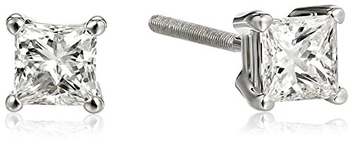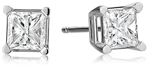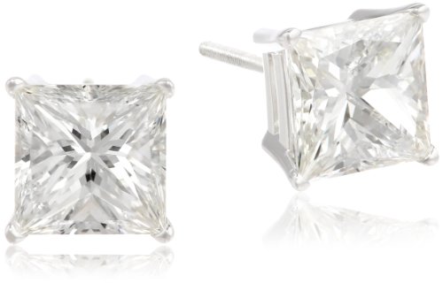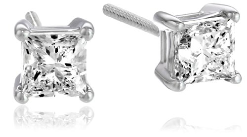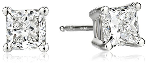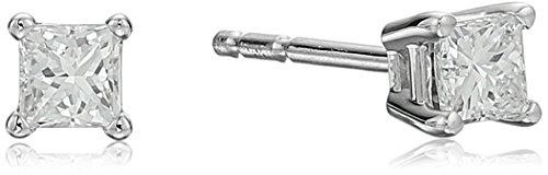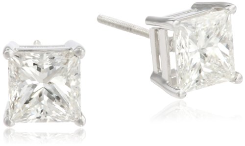 The best thing about these diamond earrings is that they can be worn every single day to show them off. Flirty and eye-catching, each princess-cut stone rests in a four-prong setting made of 18 karat white gold. The diamonds have a total carat weight of 1 carat. The smooth finish of the metal and the light-reflecting cut of the gems make the pair immediately noticeable. Posts with friction backs keep the shiny pair securely on the ears. This is an essential accessory that can be worn frequently and with almost anything--it is certain to be a favorite. These are fine quality diamonds, with exceptional brilliance. They are near-colorless, with a minimum color rating of H-I, and appear white to the eye. The clarity rating of these diamonds is SI1/2, meaning there are small inclusions that can be seen somewhat easily under 10x magnification. These inclusions are not visible to the unaided eye.