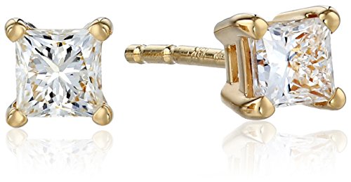 Classic stud earring in 18k gold with pretty princess-cut diamond and screw backing for added security